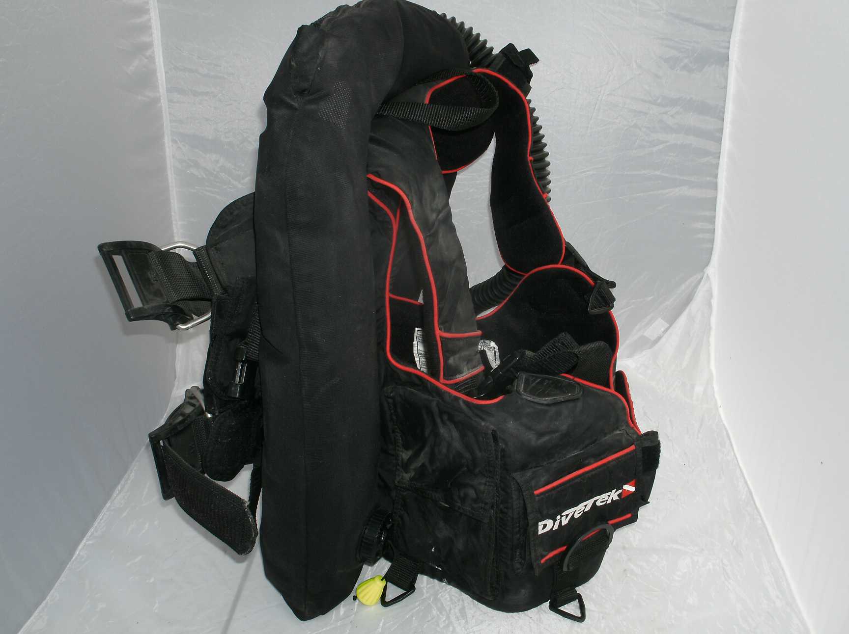 Back inflate BCD with dual tank rings and trim weight pockets.